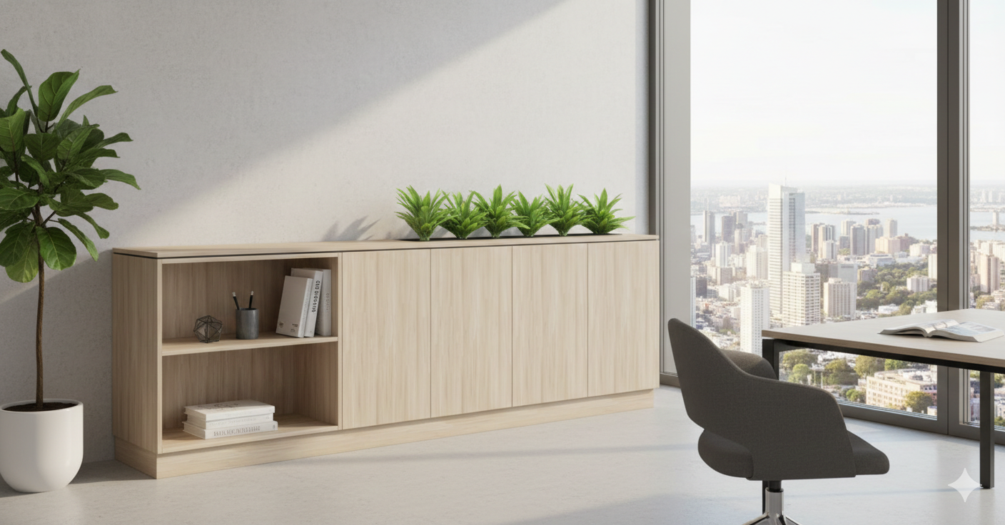 Perfect for executive offices, meeting areas, or collaborative zones, it blends functionality with contemporary design to create storage that’s as impressive as it is versatile.