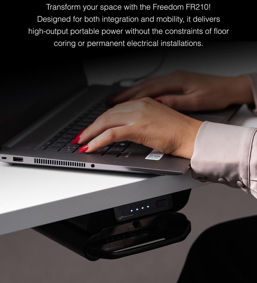 As a result, Freedom keeps your devices powered up while operating off-site or in a collaborative environment that doesn’t have any fixed outlets for you to be able to plug in to.