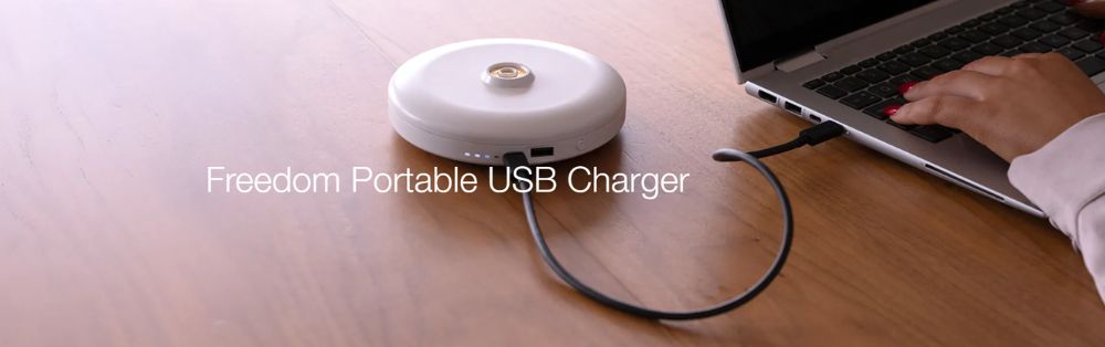 Upon returning the power bank to the stackable charging base, Freedom recharges wirelessly ready for use the next day.
