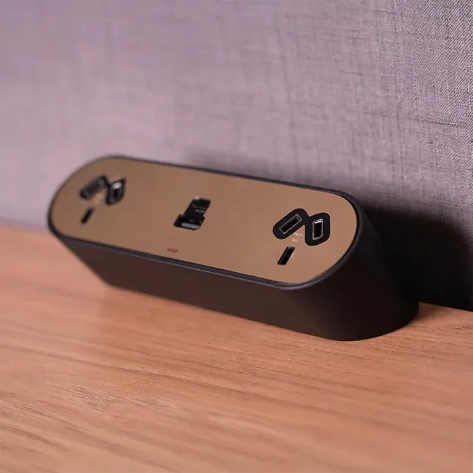 Available in both above and in-desk mounting options, it delivers easy access to power and charging while maintaining a clean, integrated look.