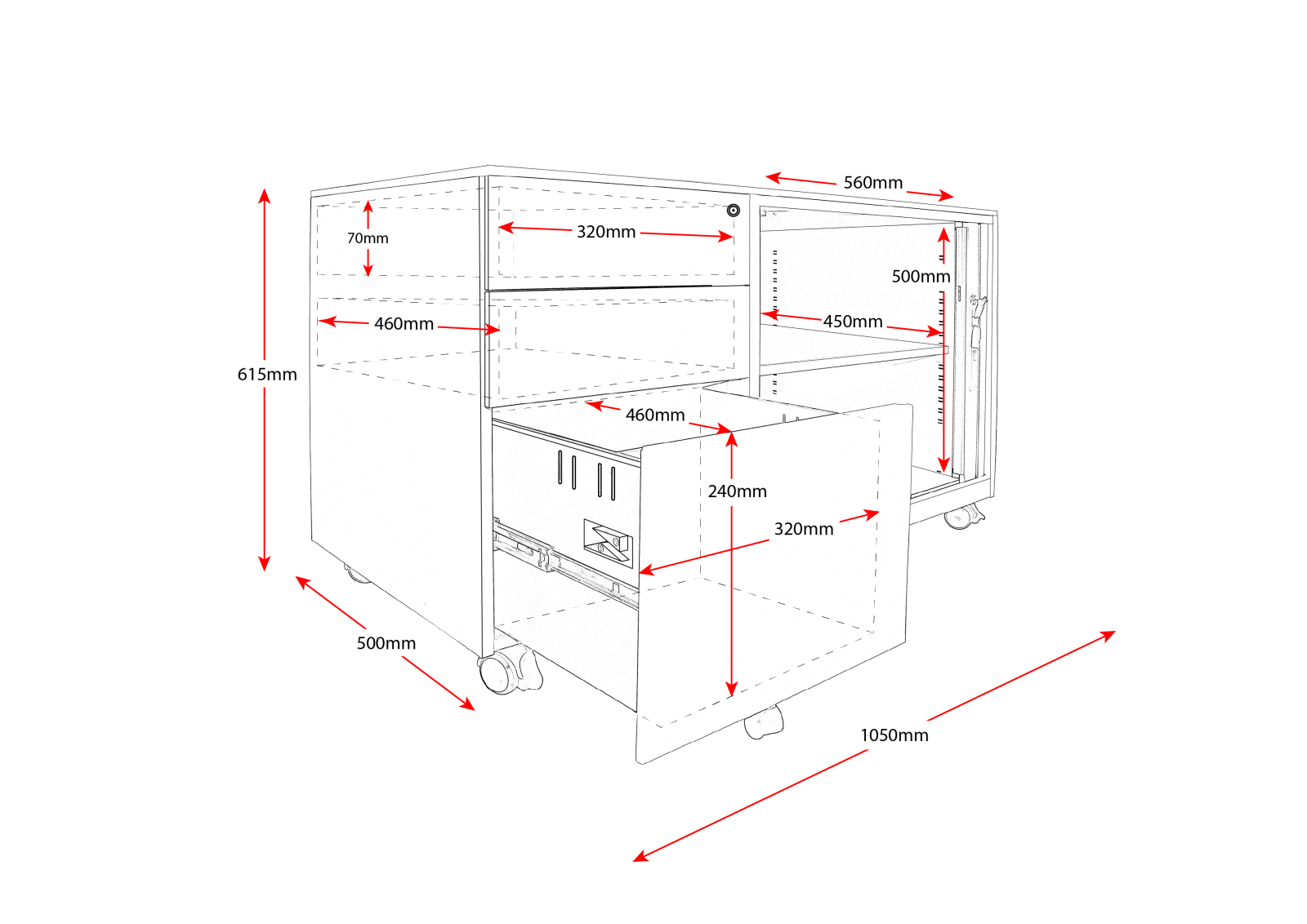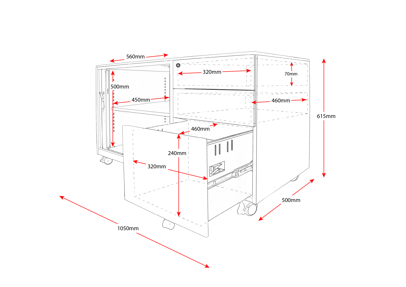 • Bottom filing drawer (Internal) – 240mm H x 320mm W x 460mm D
