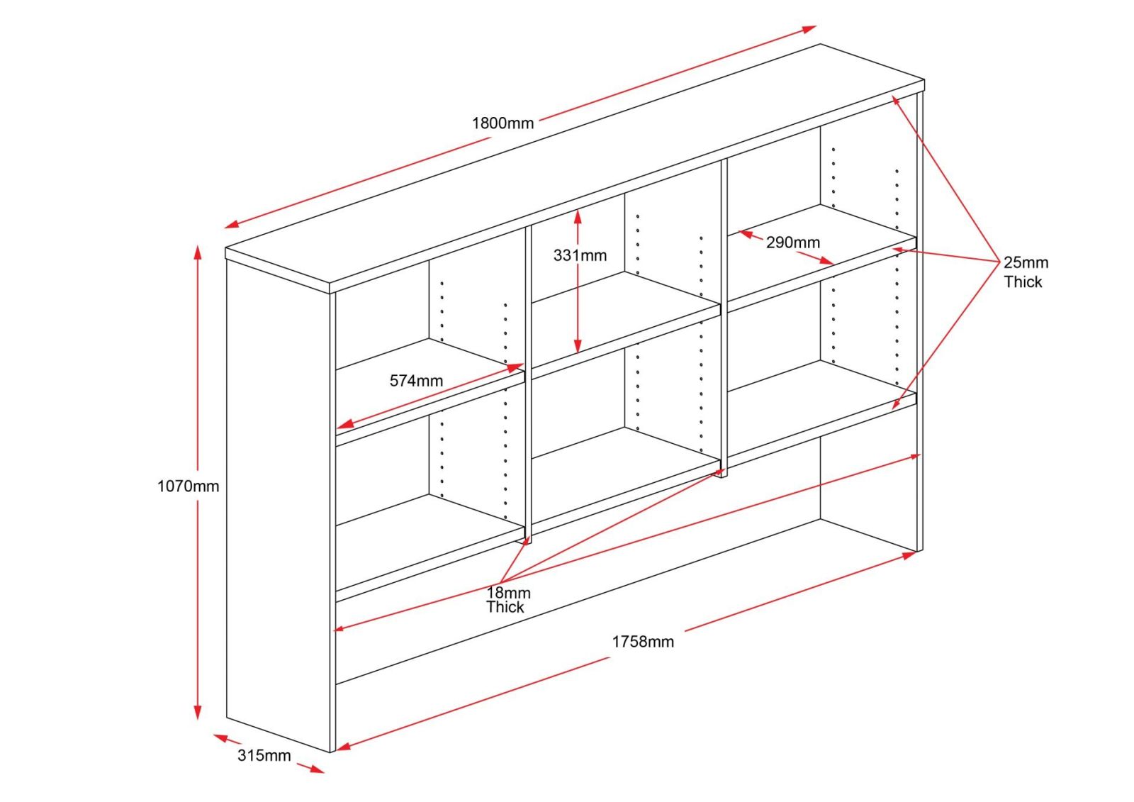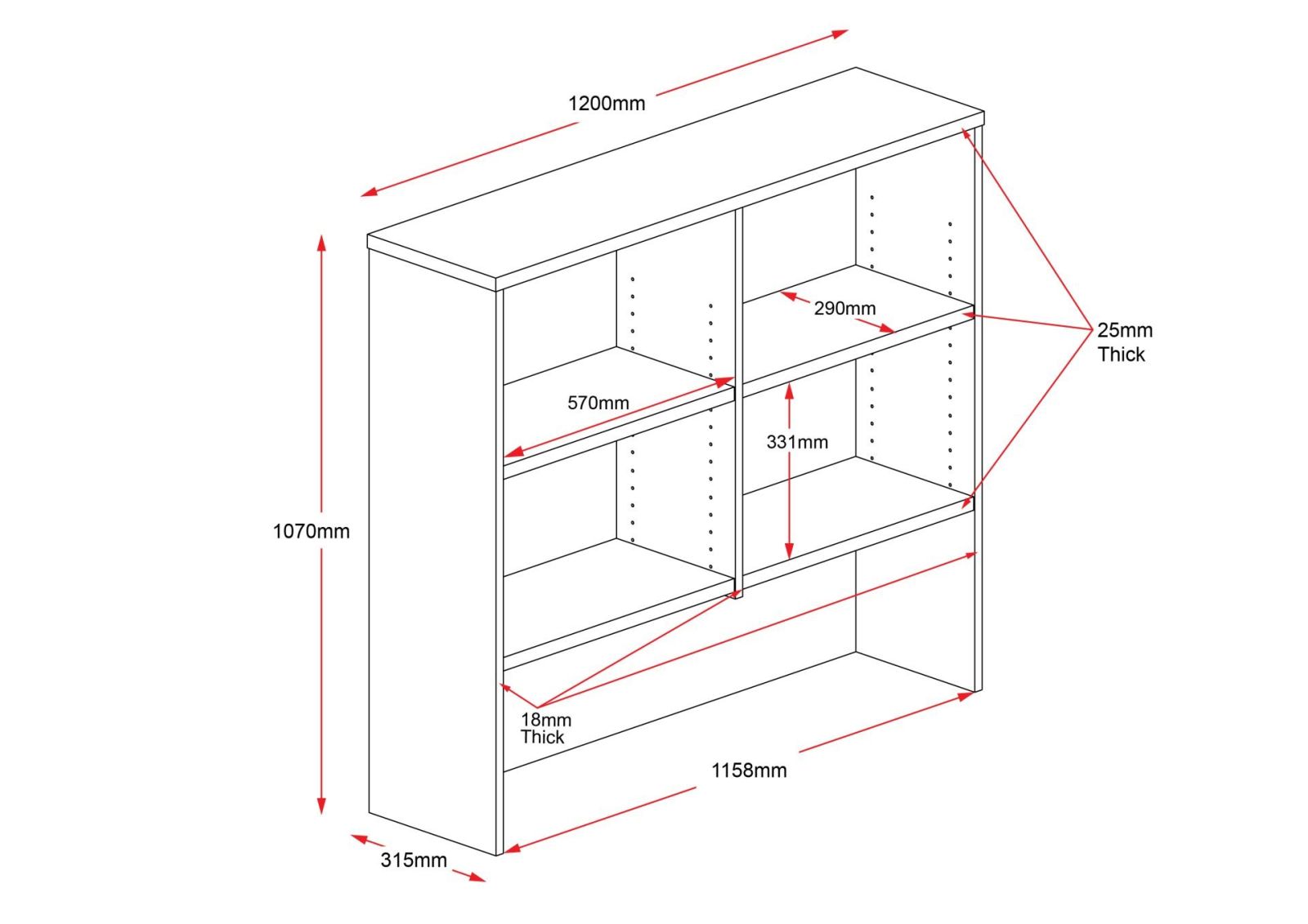• 315mm D x 1070mm H