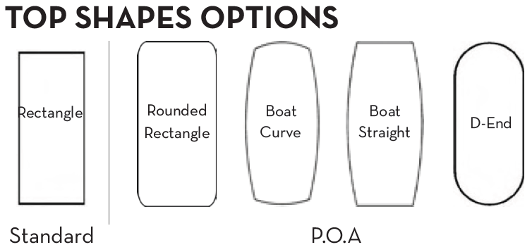 Refer images for Top Shape options - Please note pricing may change based on selection.