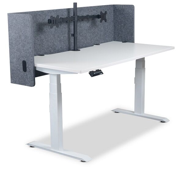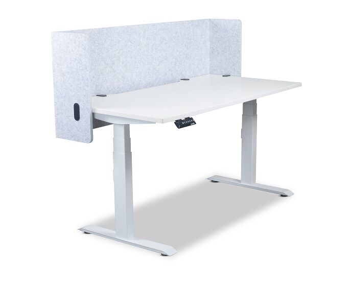 Wrap Around Acoustic Screen Panel - Suits 1500mm Wide Desk - Light Grey - White Brackets